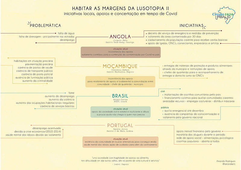 FAUL e financiado pela FCT e AKDN) e do pós-doutorado Territórios periféricos da Lusotopia de Débora Cavalcanti (NEST, FAU-UFAL). Pretende-se ouvir as vozes dos bairros destes 4 lugares, confrontar suas situações e suas visões