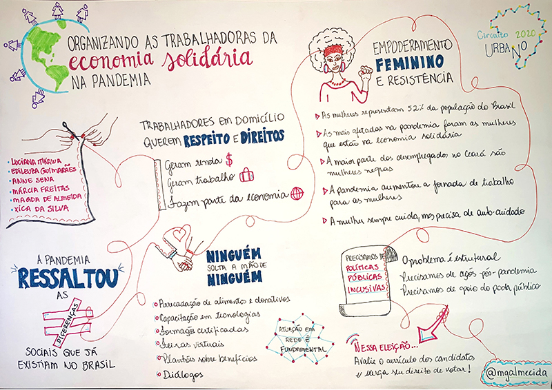 no aprofundamento das vulnerabilidades, desigualdades e precariedades. Questões de higiene, saúde e segurança no trabalho das trabalhadoras informais, violência contra a mulher, retorno seguro às feiras públicas de economia solidária,
