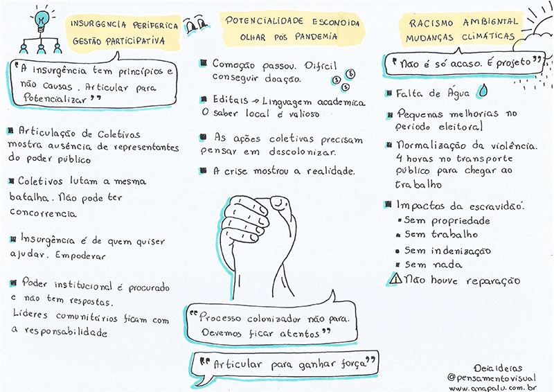 e potencializaram as ações que já desempenhavam antes da COVID-19, suas visões sobre a valorização da comunidade, políticas públicas e o futuro das periferias pós pandemia.