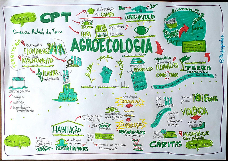 e consumidores e integração com movimentos sociais. Com a pandemia iniciou a campanha Campo e Favela de mãos dadas contra o Coronavírus e a Fome com doação de alimentos agroecológicos .